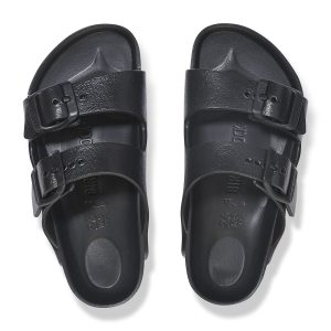The legendary two-strap design from BIRKENSTOCK – the Arizona for kids. Modeled on the cork original. this sandal is made from ultra lightweight and highly flexible EVA. These sandals are shock absorbing. waterproof. and skin-friendly. Wear them at the beach. in the backyard. or by the pool. Sandals for all-day play! -BIRKENSTOCK US
