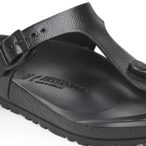 The BIRKENSTOCK Gizeh is our classic thong sandal. Modeled on the cork original. this sandal is made from ultra lightweight and highly flexible EVA. These colorful sandals are shock-absorbent. waterproof. and skin-friendly. Wear them at the beach. in the garden. or in wellness and spa areas. It’s the perfect addition to your classic BIRKENSTOCK sandals.