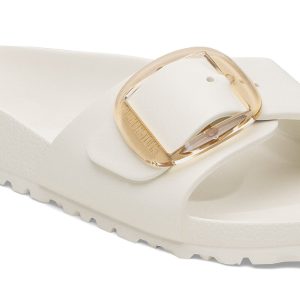 This is a new and modern interpretation of the BIRKENSTOCK classic Madrid. This version features our popular Big Buckle made from a stainless synthetic material and makes an impression with its durability and minimalist design. Modeled on the cork sandal. it is made from the ultra-lightweight and highly flexible synthetic material EVA. The high-quality. odor-neutral EVA has been tested for harmful substances and combines numerous positive attributes: it is very light. highly elastic. shock-absorbent. water-resistant. and skin-friendly. -BIRKENSTOCK US